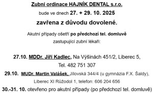 5.6.2023 V současné době bohužel nové pacienty z důvodu naplnění kapacit nepřijímáme. Děkujeme za pochopení.